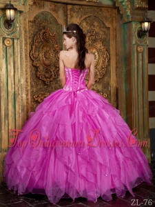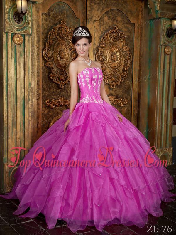 Gorgeous Ball Gown Strapless Floor-length Appliques Organza Hot Pink Fashionable Quinceanera Dress