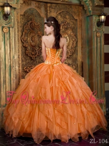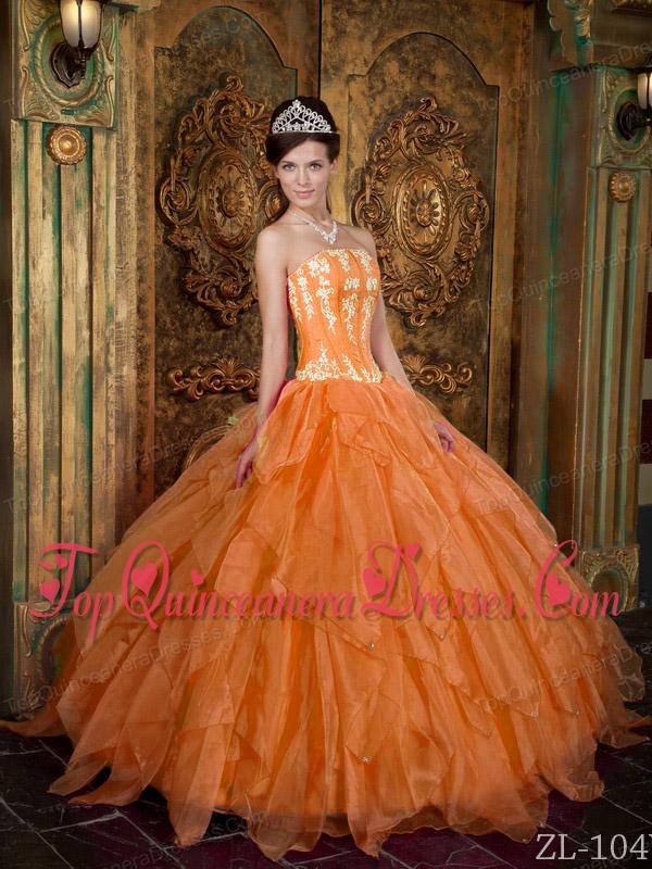 Gorgeous Ball Gown Strapless Floor-length Appliques Organza Orange Cheap Quinceanera Dress