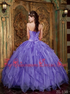 Gorgeous Ball Gown Strapless Floor-length Appliques Organza Purple Quinceanera Dress