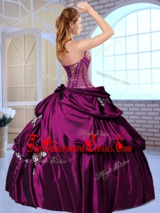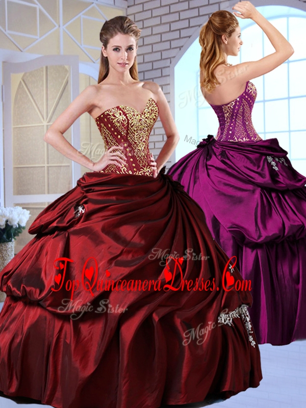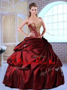 Gorgeous Ball Gown Taffeta Wine Red Quinceanera Gowns with Pick Ups