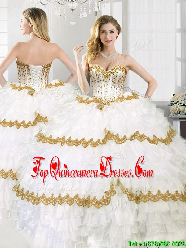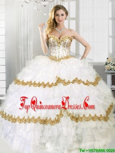 Gorgeous Beaded and Ruffled Layers Sweet 16 Dress in White