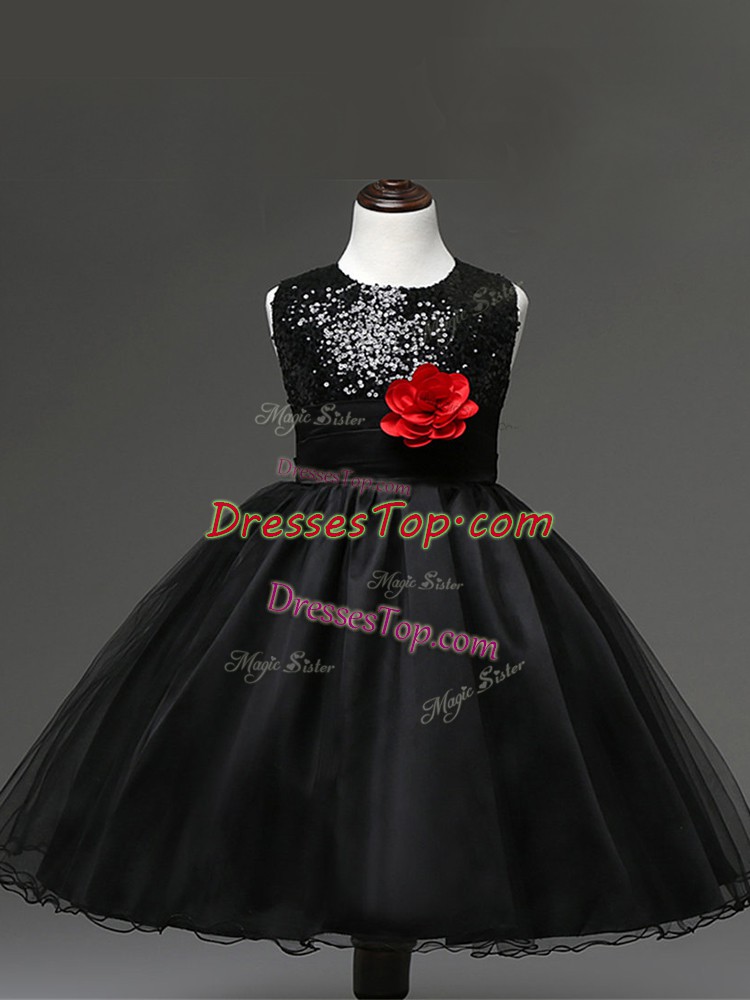 Gorgeous Black Sleeveless Tulle Zipper Kids Pageant Dress for Wedding Party