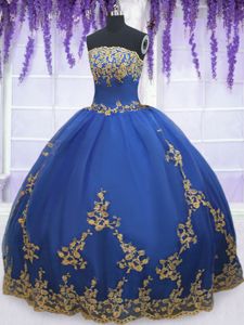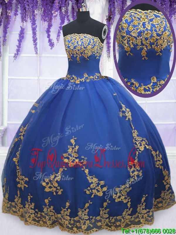 Gorgeous Blue Zipper Vestidos de Damas Appliques Sleeveless Floor Length
