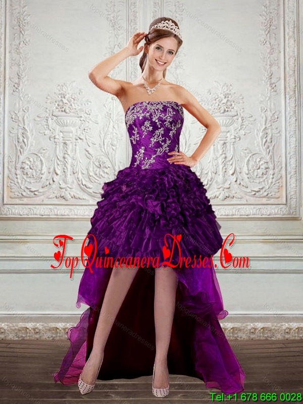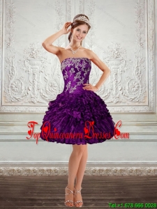 Gorgeous Dark Purple Strapless Dama Dresses with Embroidery and Ruffles