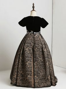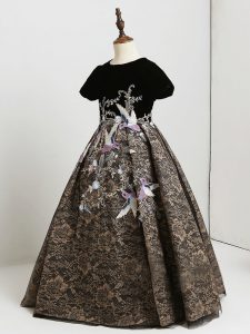 Gorgeous Floor Length A-line Short Sleeves Black Pageant Dress for Womens Zipper