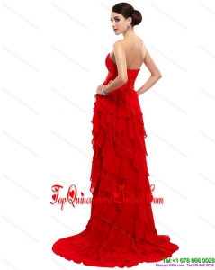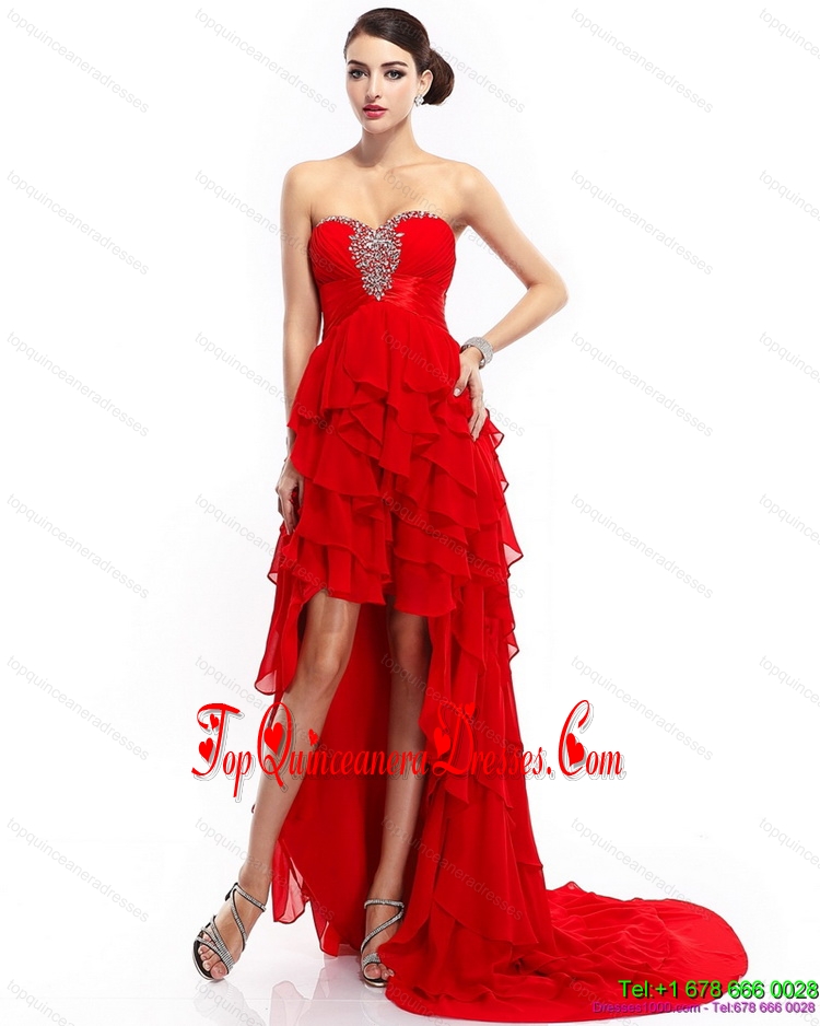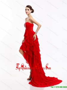 Gorgeous High Low Ruffled Layers Beading Red Prom Dresses for 2015