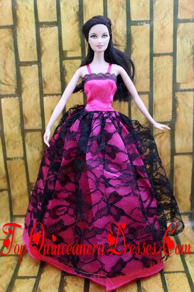 Gorgeous Hot Pink and Black Lace Gown For Barbie Doll