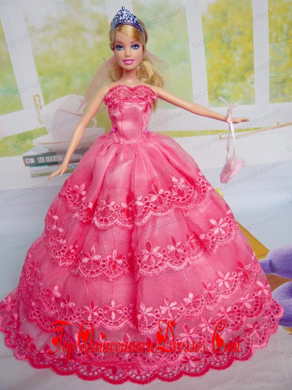 Gorgeous Hot Pink Party Clothes Organza for Noble Barbie Doll