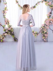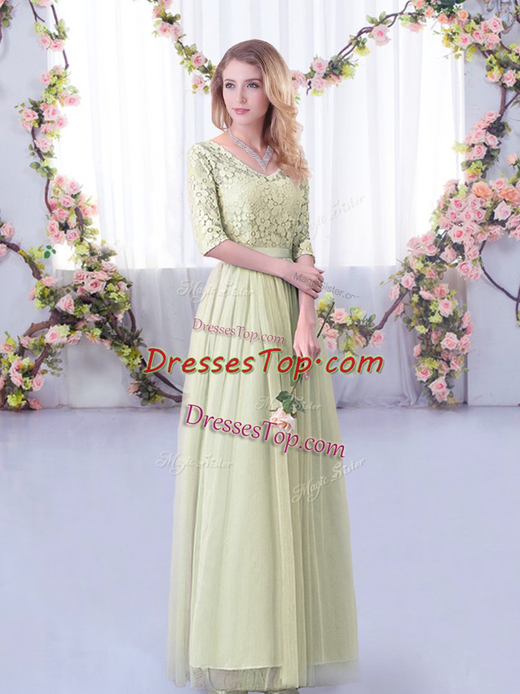 Gorgeous Lace and Belt Dama Dress Yellow Green Side Zipper Half Sleeves Floor Length