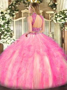 Gorgeous Lilac Backless Ball Gown Prom Dress Beading and Ruffles Sleeveless Floor Length