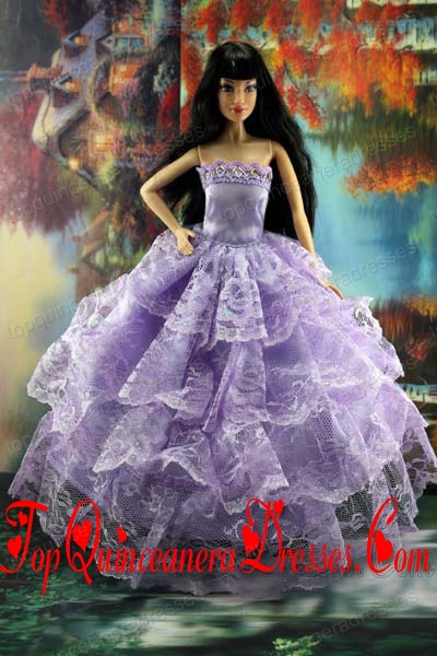 Gorgeous Lilac Gown With Ruffled Layers Lace For Barbie Doll