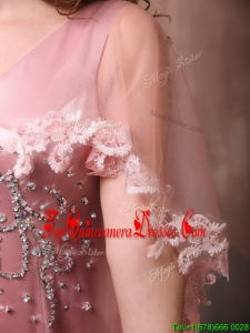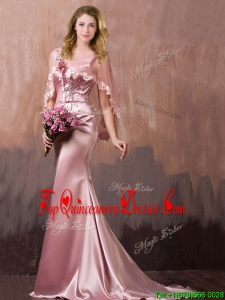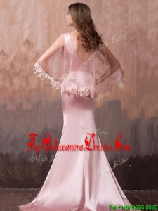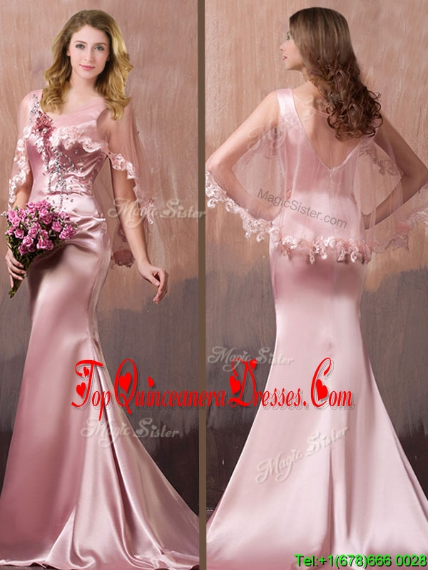 Gorgeous Mermaid V Neck Beaded Dama Dress with Brush Train