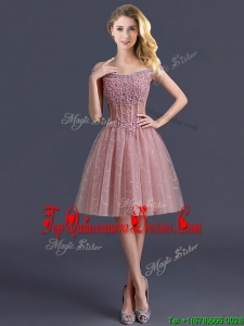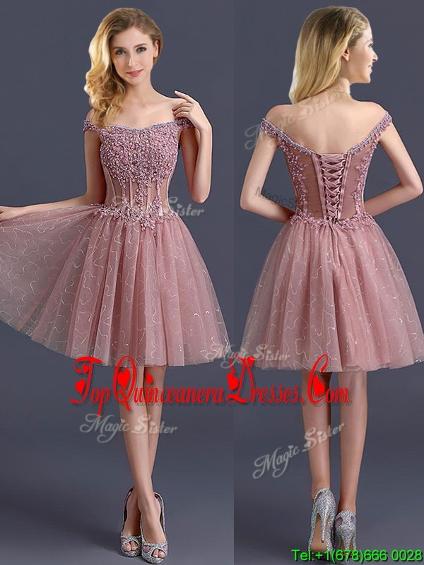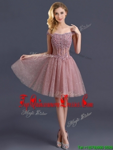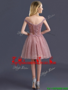 Gorgeous Off the Shoulder Cap Sleeves Quinceanera Dama Dress with Appliques