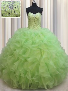 Gorgeous Organza Sleeveless Floor Length Sweet 16 Dress and Beading and Ruffles