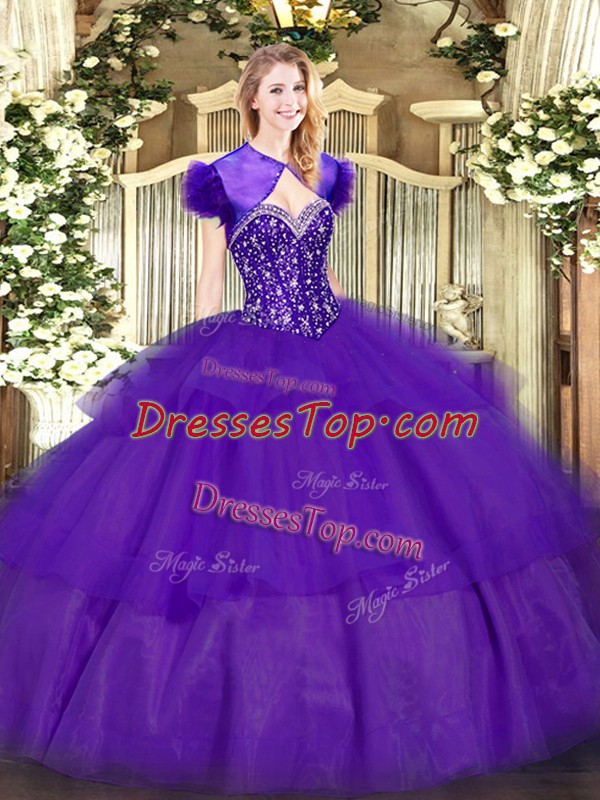 Gorgeous Purple Sleeveless Ruffled Layers Floor Length 15 Quinceanera Dress