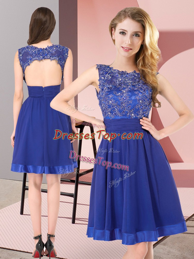 Gorgeous Royal Blue Backless Scoop Beading and Appliques Dama Dress for Quinceanera Chiffon Sleeveless