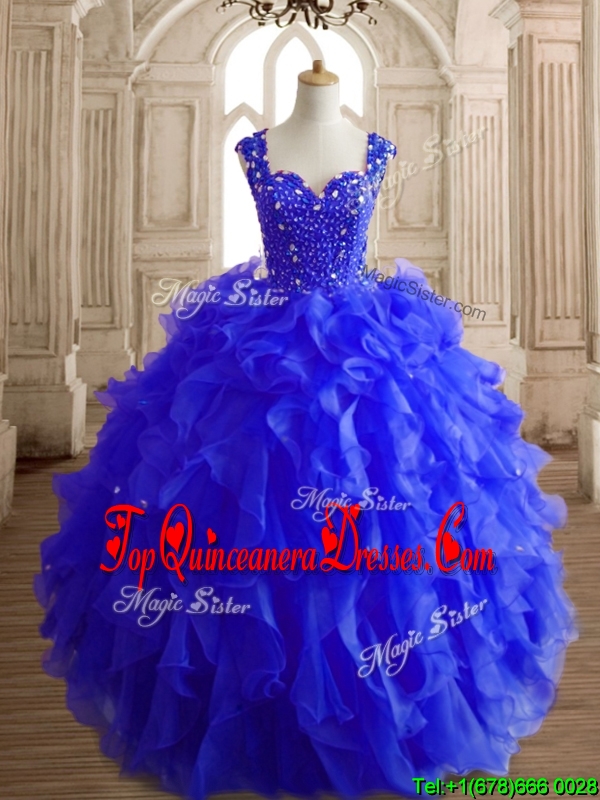 Gorgeous Royal Blue Straps Quinceanera Dress with Beading and Ruffles
