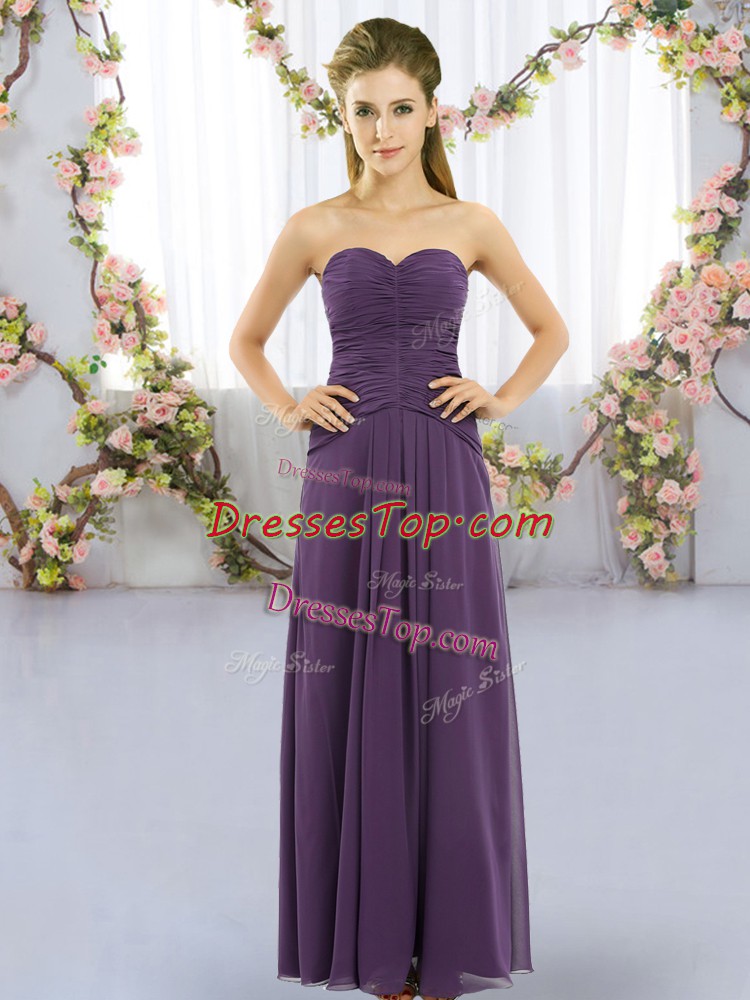 Gorgeous Ruching Dama Dress for Quinceanera Purple Lace Up Sleeveless Floor Length