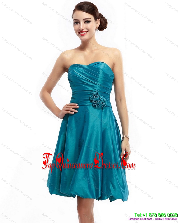 Gorgeous Ruching Sweetheart Prom Dresses with Hand Made Flowers