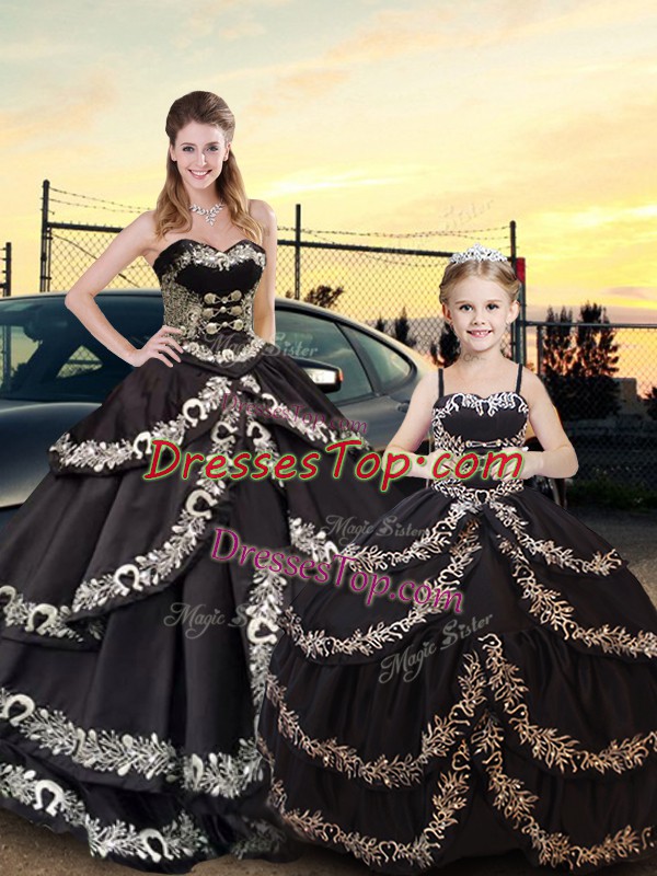 Gorgeous Sleeveless Floor Length Embroidery and Ruffled Layers Lace Up Quinceanera Gowns with Black