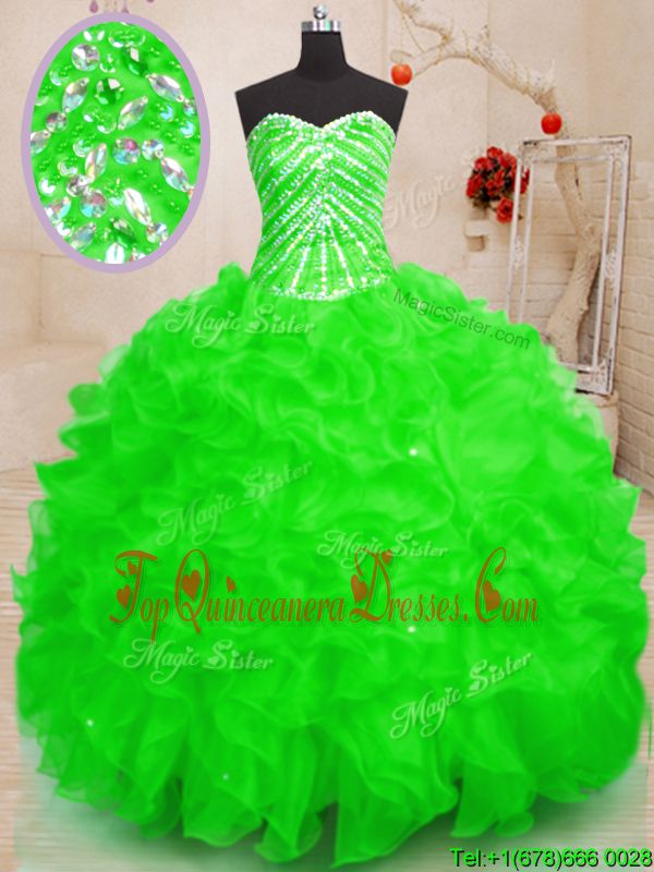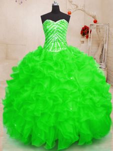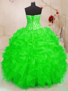 Gorgeous Sleeveless Lace Up Floor Length Beading and Ruffles and Sequins Quinceanera Gowns