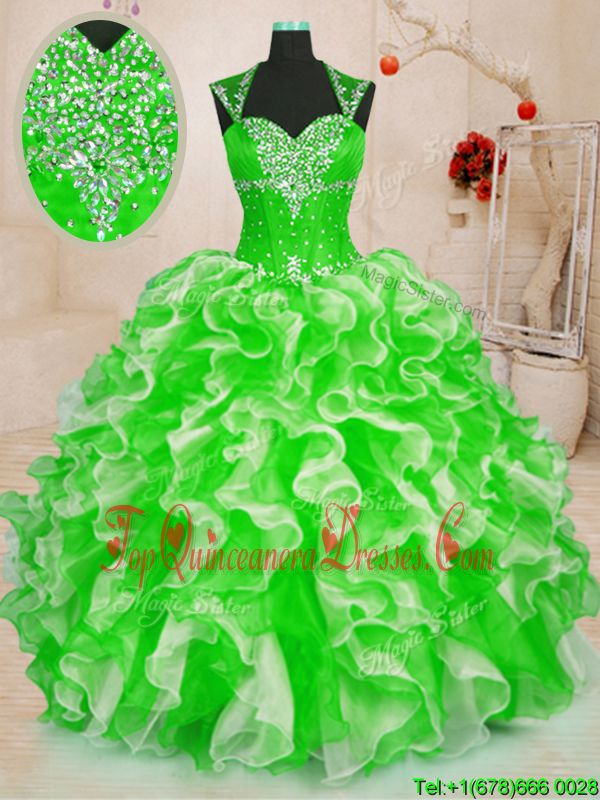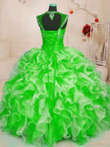 Gorgeous Sleeveless Lace Up Floor Length Beading and Ruffles Sweet 16 Quinceanera Dress