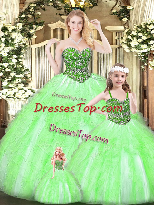 Gorgeous Sleeveless Lace Up Floor Length Beading and Ruffles Sweet 16 Quinceanera Dress