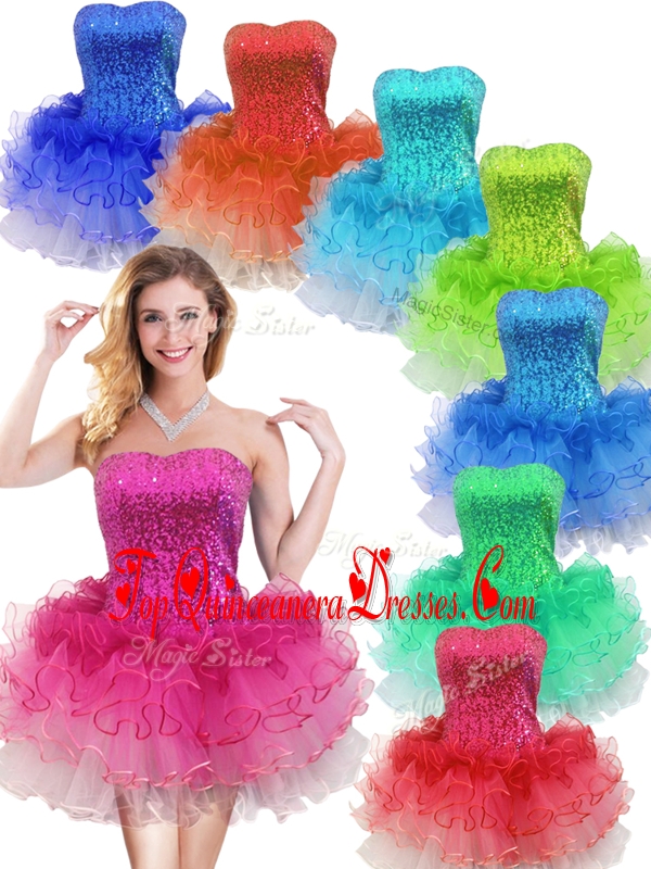 Gorgeous Strapless Short Dama Dress with Sequins and Ruffles