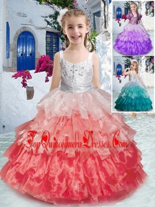 Gorgeous Straps New Arrival Kid Pageant Dresses with Ruffled Layers and Beading
