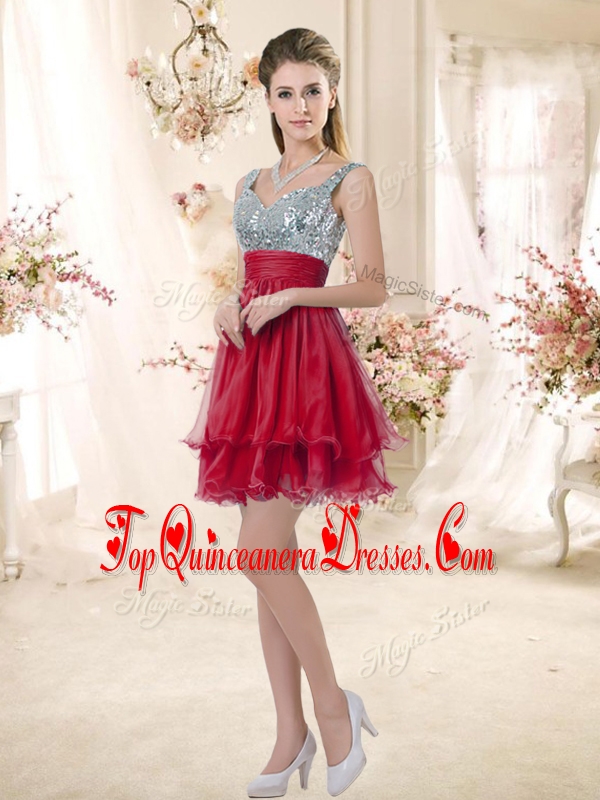 Gorgeous Straps Sequins and Ruching Dama Dresses in Wine Red