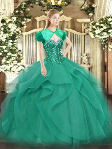 Gorgeous Sweetheart Sleeveless 15 Quinceanera Dress Floor Length Beading and Ruffles Turquoise Tulle