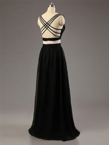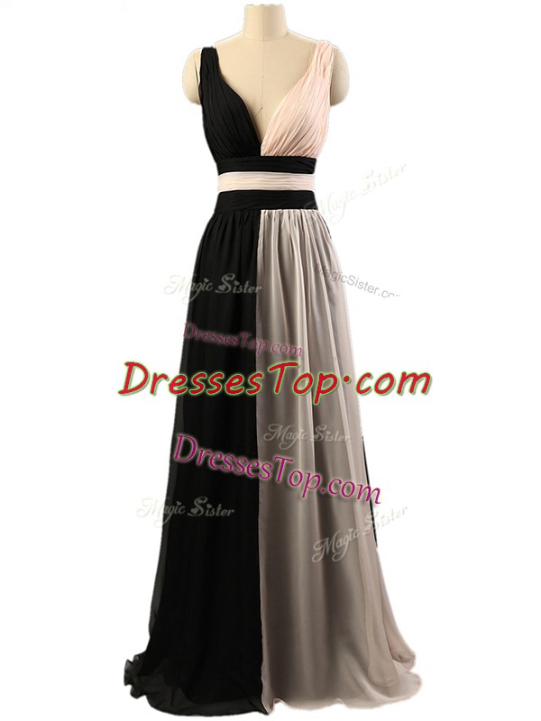 Gorgeous White And Black Empire Chiffon Straps Sleeveless Ruching Floor Length Criss Cross Damas Dress
