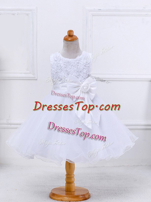 Gorgeous White Sleeveless Mini Length Bowknot Zipper Pageant Dress for Teens