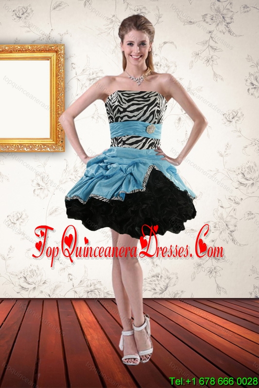 Gorgeous Zebra Printed Strapless Dama Dress with Ruffles and Pick Ups