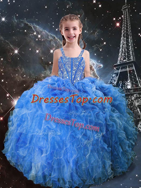 Graceful Beading and Ruffles Pageant Dress Wholesale Baby Blue Lace Up Sleeveless Floor Length