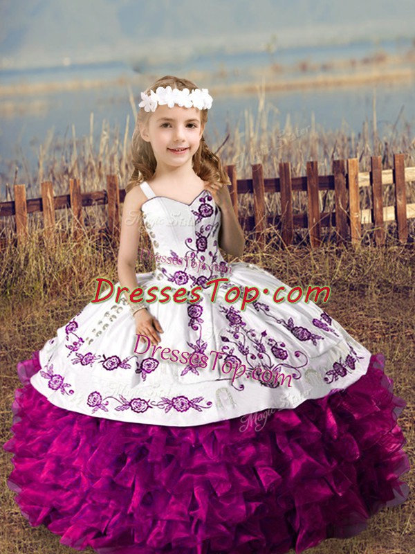 Graceful Floor Length Fuchsia Child Pageant Dress Straps Sleeveless Lace Up