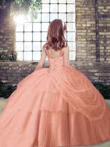 Graceful Floor Length Lace Up Little Girl Pageant Gowns Red for Party and Sweet 16 and Wedding Party with Beading