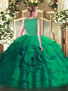 Graceful Fuchsia Scoop Neckline Beading and Ruffled Layers 15th Birthday Dress Sleeveless Side Zipper