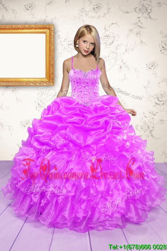 Graceful Hot Pink Ball Gowns Spaghetti Straps Sleeveless Organza Floor Length Lace Up Beading and Ruffles and Pick Ups Little Girls Pageant Dress Wholesale