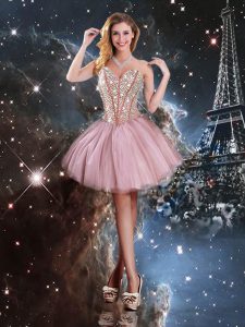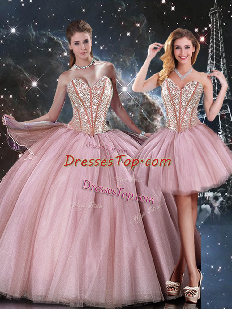 Graceful Lilac Ball Gowns Tulle Sweetheart Sleeveless Beading Floor Length Lace Up Quince Ball Gowns