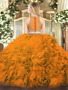 Graceful Lilac Fabric With Rolling Flowers Zipper Scoop Sleeveless Floor Length Sweet 16 Dresses Beading