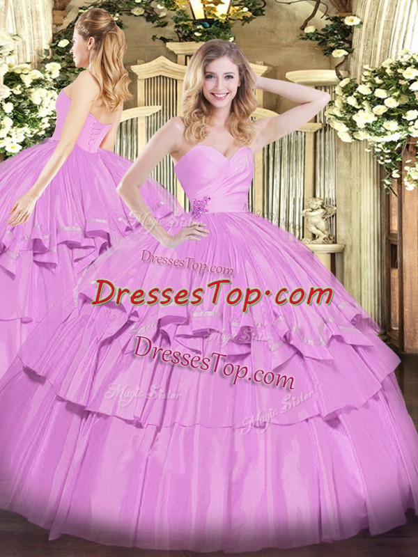 Graceful Lilac Lace Up Quinceanera Dresses Beading and Ruffled Layers Sleeveless Floor Length