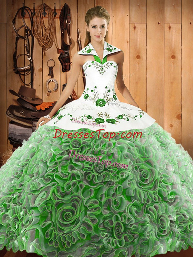 Graceful Multi-color Organza and Fabric With Rolling Flowers Lace Up Sweet 16 Quinceanera Dress Sleeveless Sweep Train Embroidery
