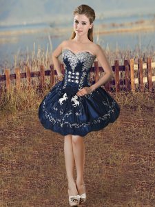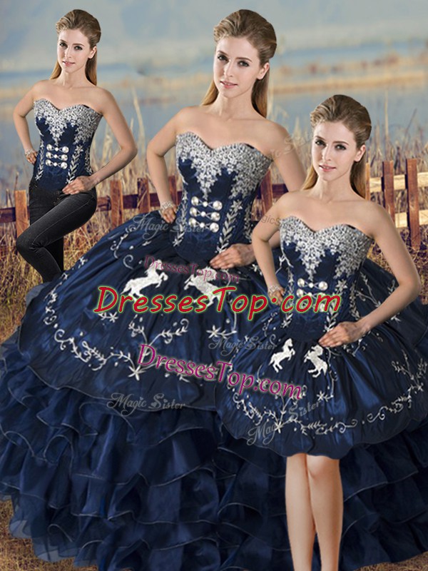 Graceful Navy Blue Organza Lace Up Sweetheart Sleeveless Floor Length Sweet 16 Dresses Embroidery and Ruffles