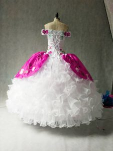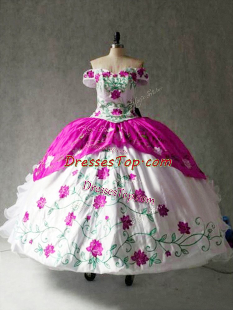Graceful Organza and Taffeta Cap Sleeves Floor Length Ball Gown Prom Dress and Embroidery and Ruffles