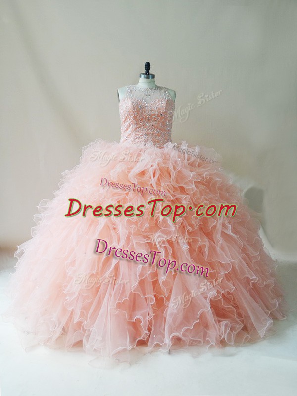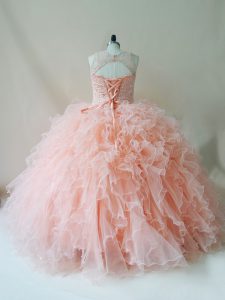 Graceful Peach Scoop Neckline Beading and Ruffles Quinceanera Dress Sleeveless Lace Up