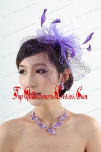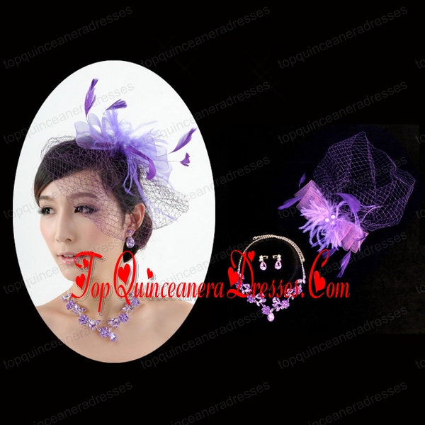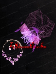 Graceful Purple Rhinestone Necklace And Earrings Wedding Jewelry Set