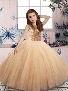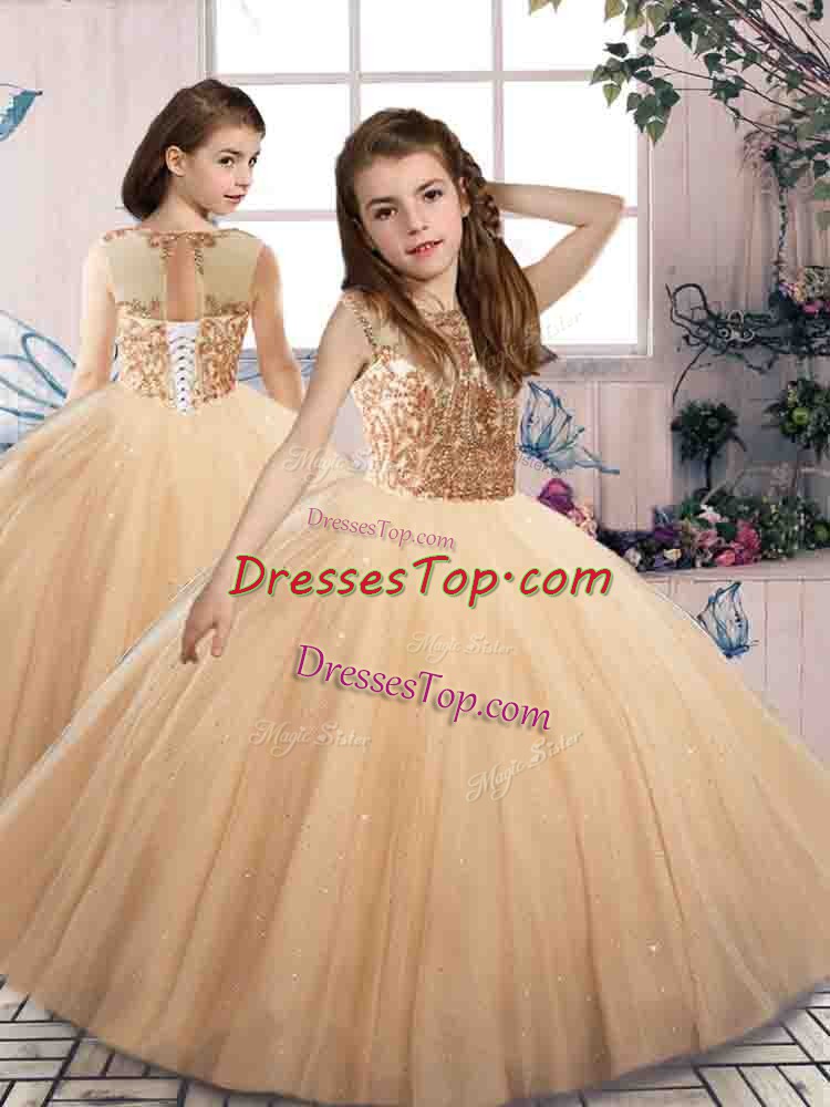 Graceful Scoop Sleeveless Lace Up Girls Pageant Dresses Champagne Tulle
