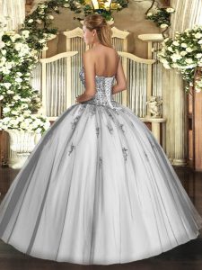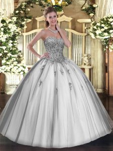 Graceful Sleeveless Tulle Floor Length Lace Up Sweet 16 Dresses in Grey with Beading and Appliques