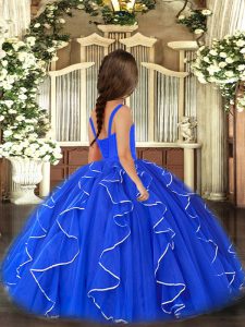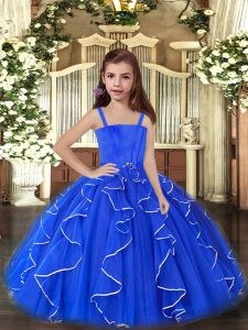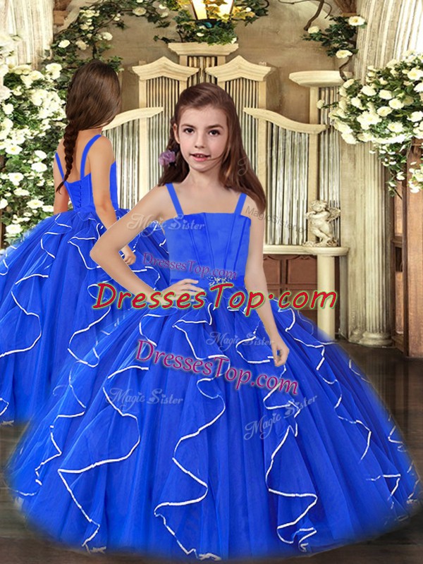 Graceful Straps Sleeveless Pageant Gowns For Girls Floor Length Ruffles Royal Blue Tulle